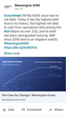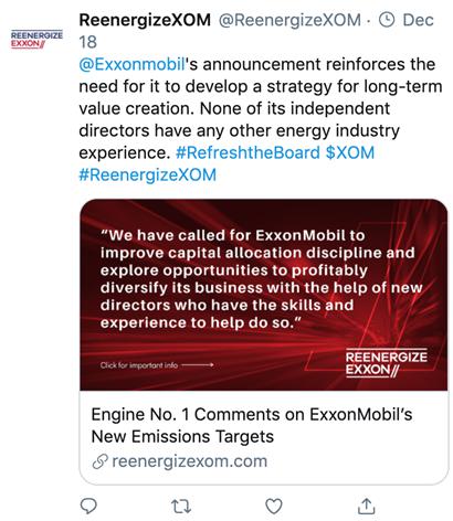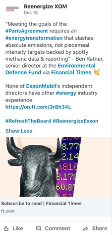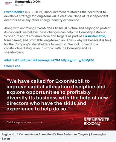 On December 18, 2020, Engine No. 1 LLC ("Engine No. 1") made posts to its social media channels on Twitter and LinkedIn. The images of such posts are filed herewith as Exhibit 1.