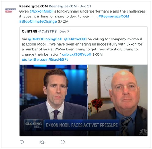 On December 22, 2020, Engine No. 1 LLC made the following post to its social media channel on Twitter: