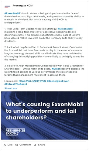 From time to time, Engine No. 1 LLC may make the following posts to its social media channels on Twitter and LinkedIn: