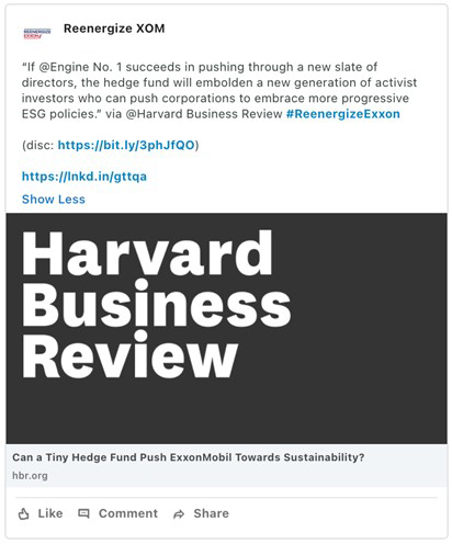 | Exhibit 2 contains statements that, beginning on January 27, 2021, will be advertised on search engines and social media platforms and will direct viewers to www.ReenergizeXOM.com. |