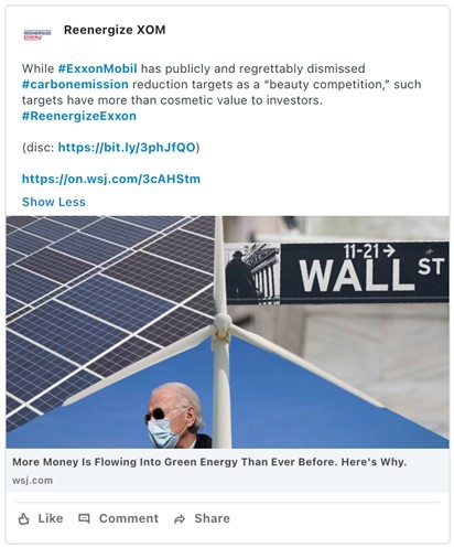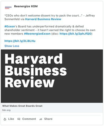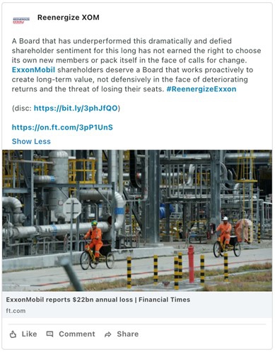From time to time, Engine No. 1 LLC may make the following posts to its social media channels on Twitter and LinkedIn: