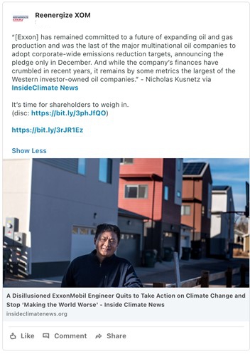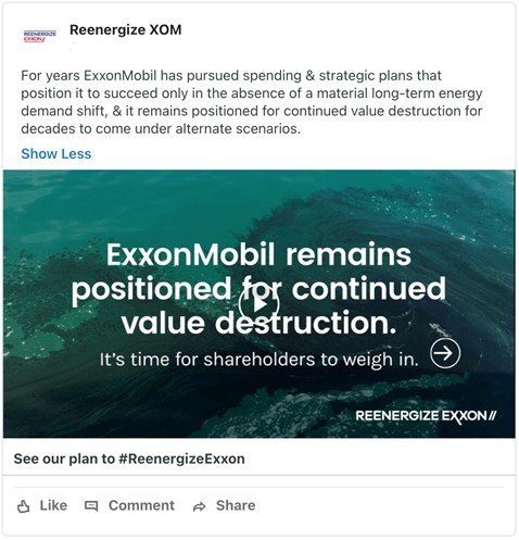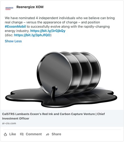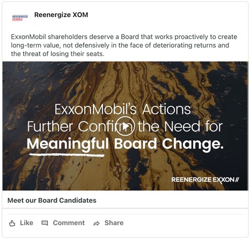 From time to time, Engine No. 1 LLC may make the following posts to its social media channels on Twitter and LinkedIn: