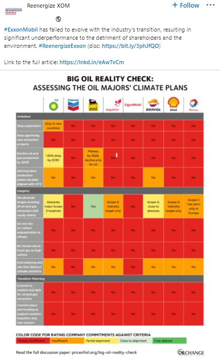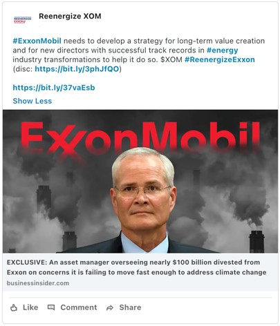 From time to time, Engine No. 1 LLC may make the following posts to its social media channels on Twitter and LinkedIn: