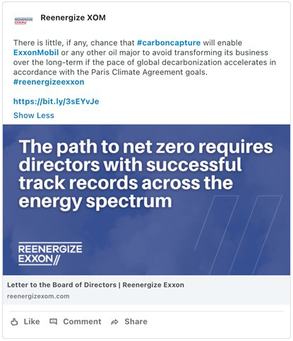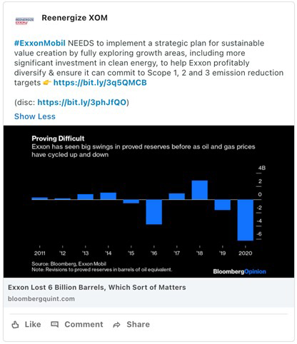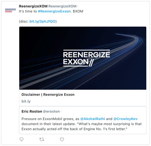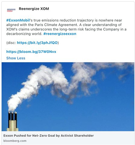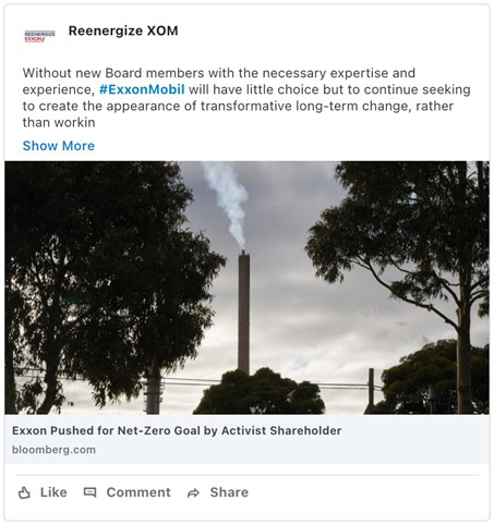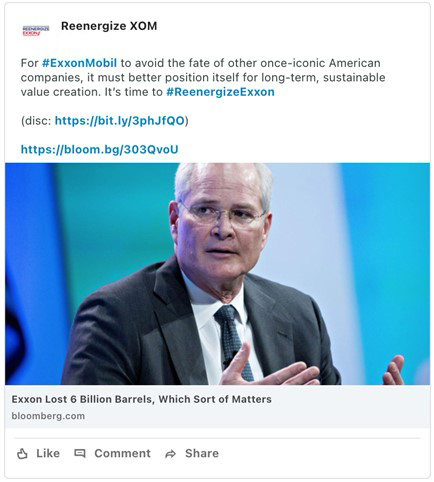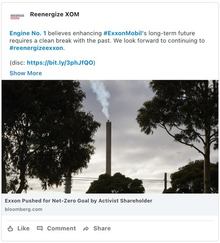 From time to time, Engine No. 1 LLC may make the following posts to its social media channels on Twitter and LinkedIn:
