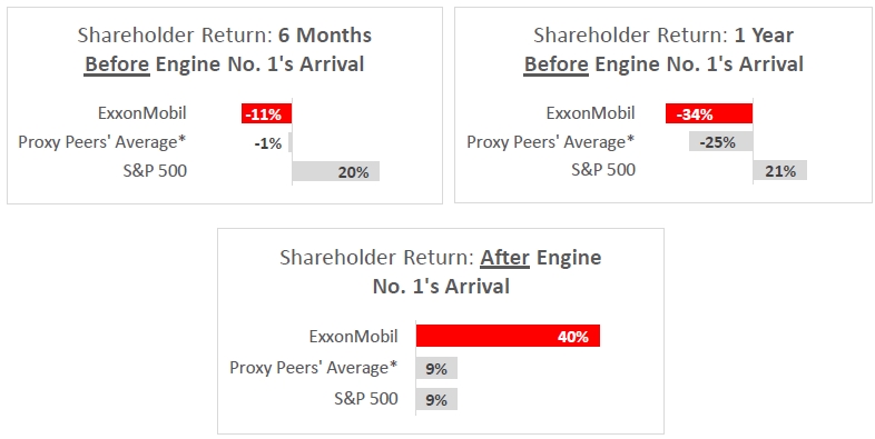 | · | Reality: ExxonMobil destroyed billions in value through heavy spending on low return projects that caused it to underperform all of its peers for the last 3, 5, and 10 years prior to our arrival, even during higher oil and gas prices. While the Board now claims to have turned over a new leaf, the market is highly skeptical. |