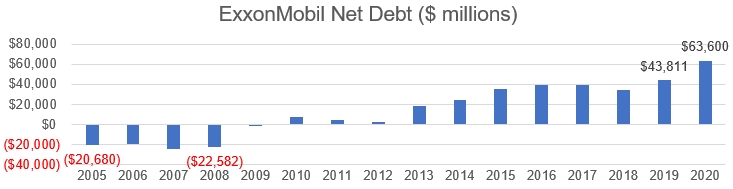 $60bn+ in net debt leaving ExxonMobil highly vulnerable with dividend funded through borrowings