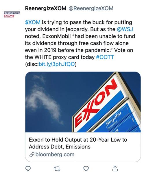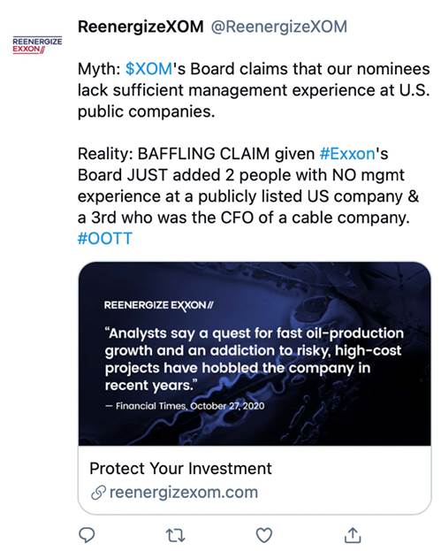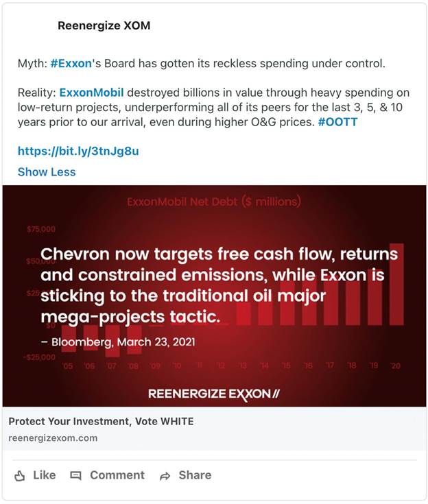 From time to time, Engine No. 1 LLC may make the following posts to its social media channels on Twitter and LinkedIn: