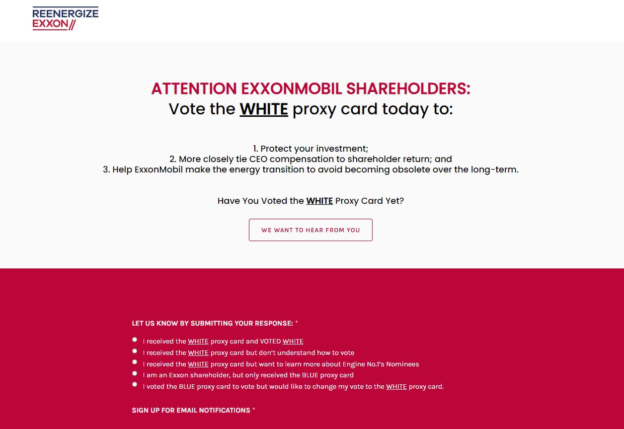 Engine No. 1 LLC added the following “splash” page on its website www.ReenergizeXOM.com.