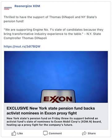 Exxon and Engine No. 1 did not respond to requests for comment.