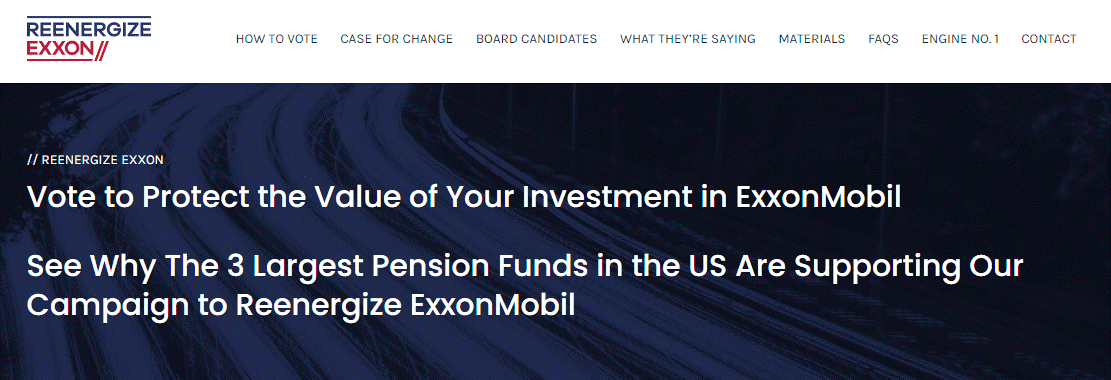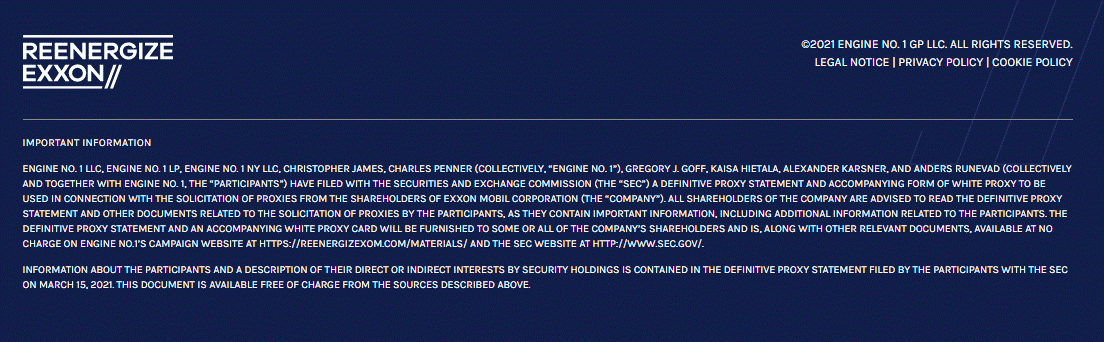 Engine No. 1 LLC added the following “splash” page on its website www.ReenergizeXOM.com.