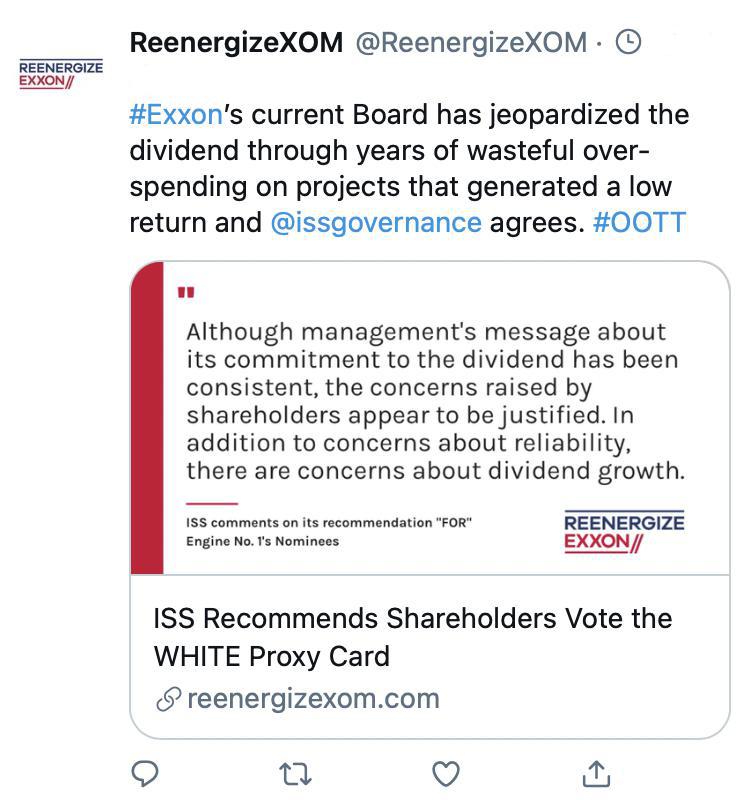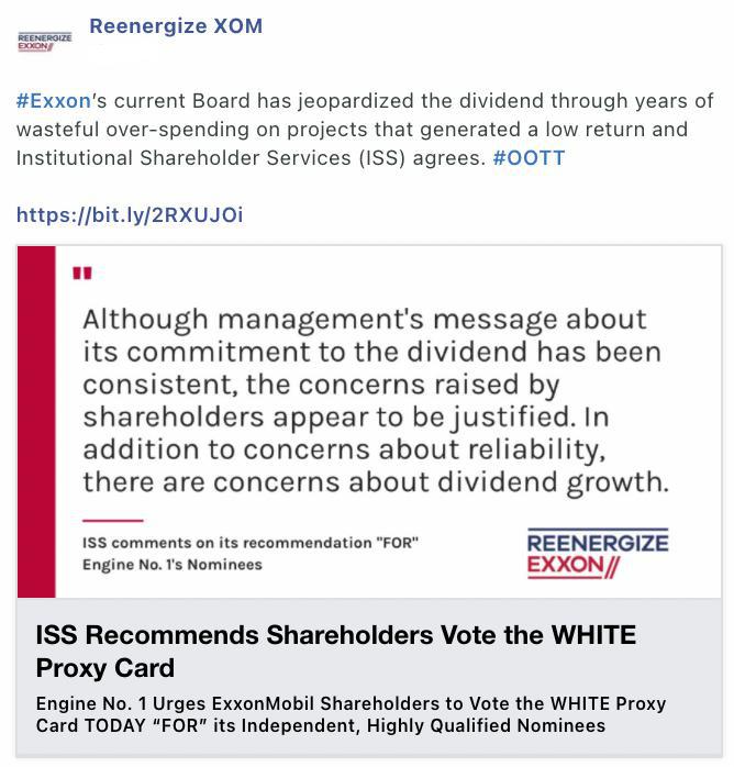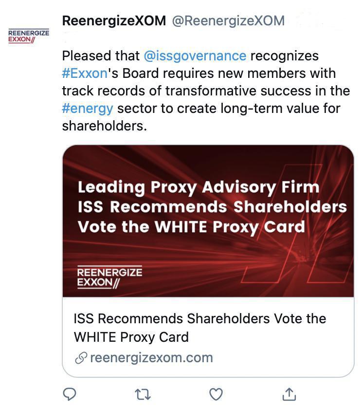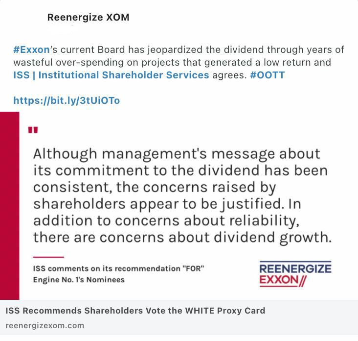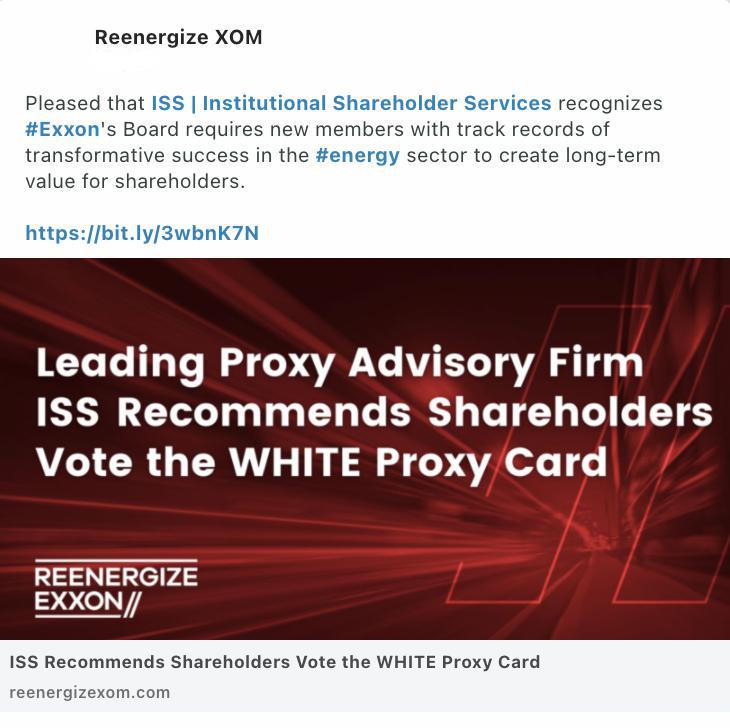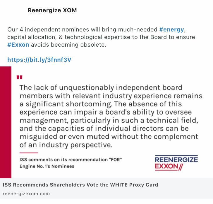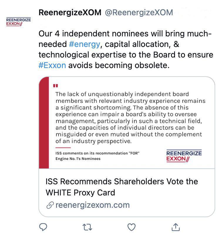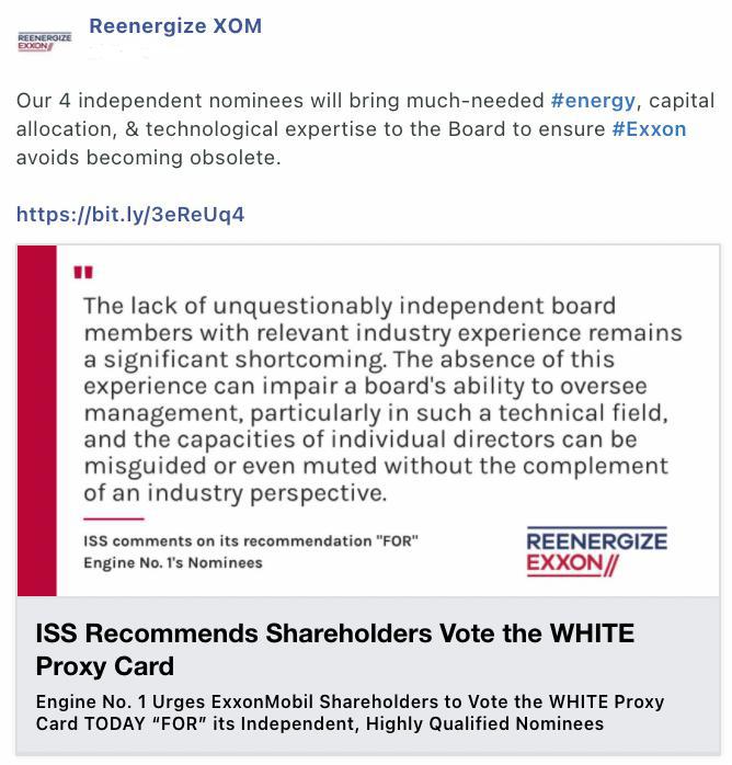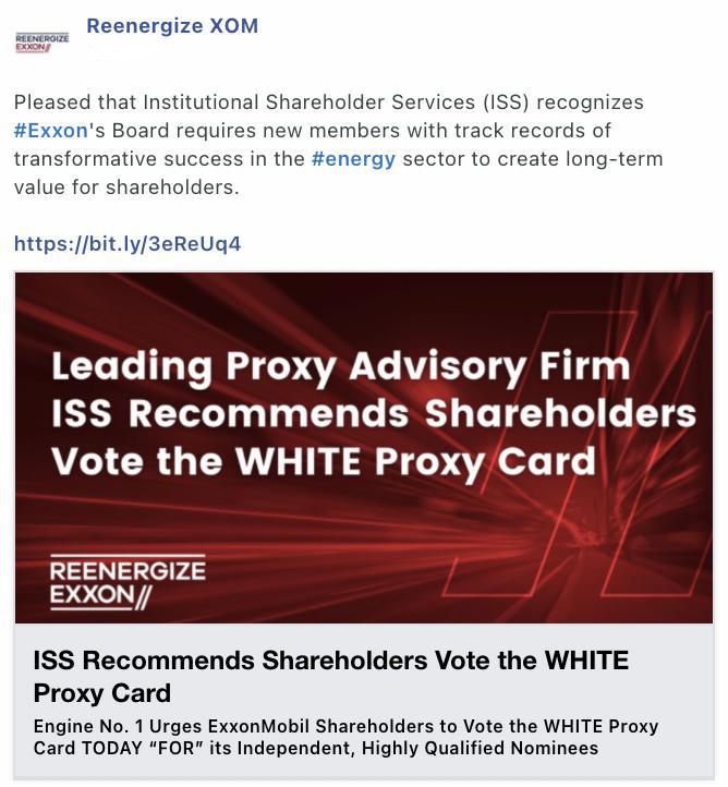 From time to time, Engine No. 1 LLC (“Engine No. 1”) may make the following posts to its social media channels. Engine No. 1 has neither sought nor obtained consent from Institutional Shareholder Services to use previously published information.