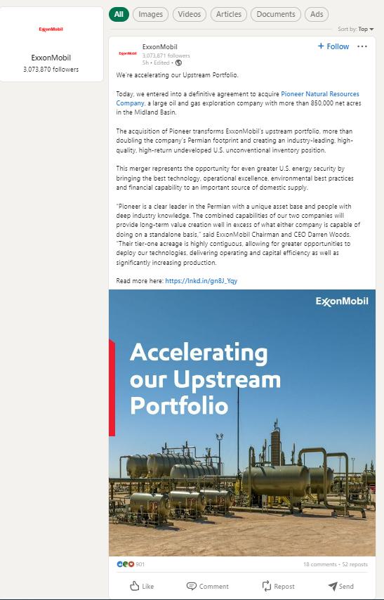 The following communication was posted on LinkedIn, by Exxon Mobil Corporation on October 11, 2023: