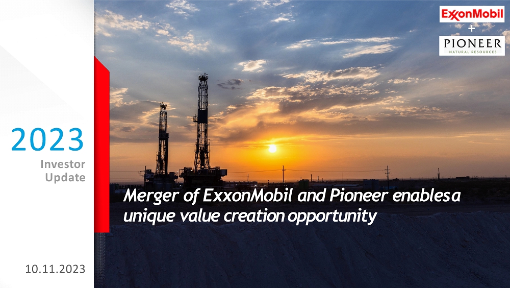 2023 Inves tor Upd a t e Merger of ExxonMobil and Pioneer enables a unique value creation opportunity 10.11.2023 +