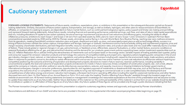 In conjunction with our recent announcements regarding Pioneer Natural Resources and Denbury, we’ve included additional information on slide 2 related to comments or information included in today’s presentation.