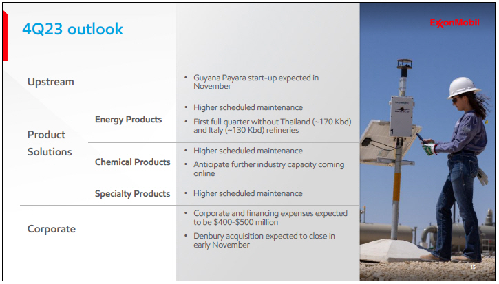 Looking ahead to the fourth quarter, we expect higher Upstream volumes primarily driven by growth from our advantaged assets, including start-up of the Guyana Payara development next month. We continue to expect annual average net production in 2023 to be about 3.7 million oil- equivalent barrels per day.