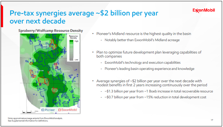 Breaking down the $2 billion of annual synergies - $1.3 billion per year comes from an increase in total recoverable resource of one billion oil-equivalent barrels over the field life. The remaining $700 million per year is largely achieved from a reduction of approximately 15% in total development cost.