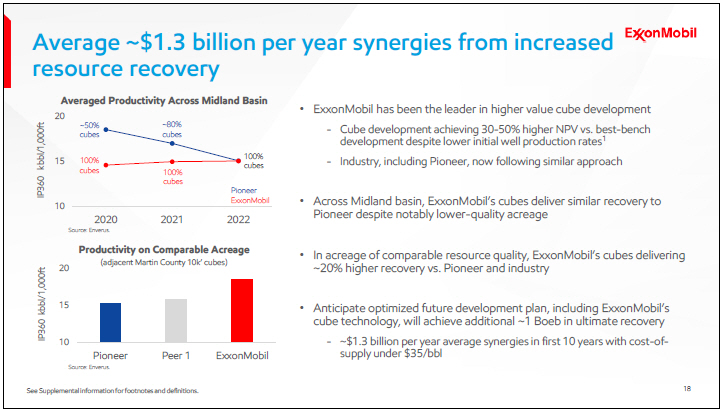 The rest of industry has now recognized this and has been following suit. The chart on the top left illustrates productivity for ExxonMobil and Pioneer across all the Midland Basin assets. It demonstrates that in 2022, ExxonMobil’s cubes delivered similar recoveries to Pioneer despite our notably lower quality resource.
