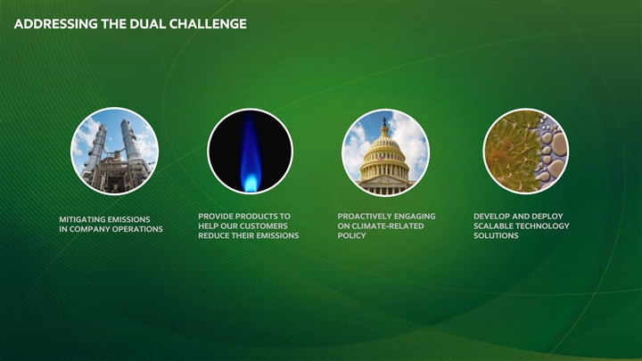 PROGRESSING SOLUTIONS ADDRESSING THE DUAL CHALLENGE PROVIDE PRODUCTS TO PROACTIVELY ENGAGING DEVELOP AND DEPLOY MITIGATING EMISSIONS HELP OUR CUSTOMERS ON CLIMATE-RELATED SCALABLE TECHNOLOGY IN COMPANY OPERATIONS REDUCE THEIR EMISSIONS POLICY SOLUTIONSPROGRESSING SOLUTIONS ADDRESSING THE DUAL CHALLENGE PROVIDE PRODUCTS TO PROACTIVELY ENGAGING DEVELOP AND DEPLOY MITIGATING EMISSIONS HELP OUR CUSTOMERS ON CLIMATE-RELATED SCALABLE TECHNOLOGY IN COMPANY OPERATIONS REDUCE THEIR EMISSIONS POLICY SOLUTIONS