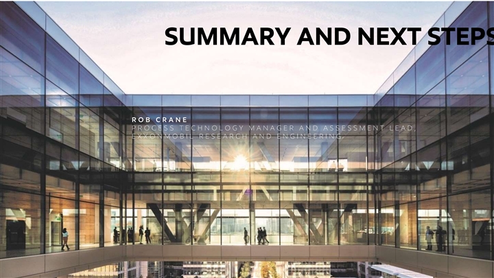 SUMMARY AND NEXT STEPS R O B C R A N E P R O C E S S T E C H N O L O G Y M A N A G E R A N D A S S E S S M E N T L E A D , E X X O N M O B I L R E S E A R C H A N D E N G I N E E R I N GSUMMARY AND NEXT STEPS R O B C R A N E P R O C E S S T E C H N O L O G Y M A N A G E R A N D A S S E S S M E N T L E A D , E X X O N M O B I L R E S E A R C H A N D E N G I N E E R I N G