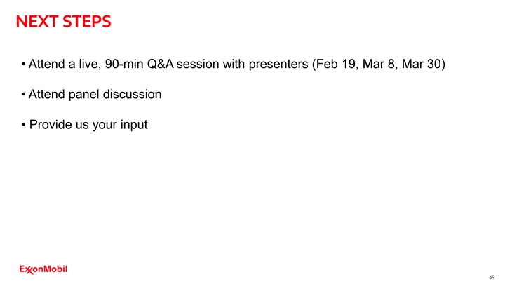 NEXT STEPS • Attend a live, 90-min Q&A session with presenters (Feb 19, Mar 8, Mar 30) • Attend panel discussion • Provide us your input 69NEXT STEPS • Attend a live, 90-min Q&A session with presenters (Feb 19, Mar 8, Mar 30) • Attend panel discussion • Provide us your input 69