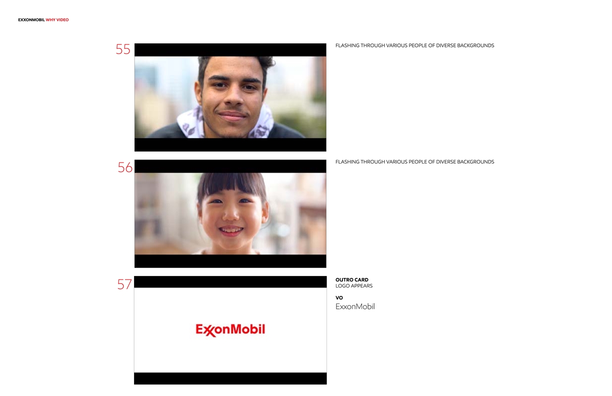 EXXONMOBIL WHY VIDEO FLASHING THROUGH VARIOUS PEOPLE OF DIVERSE BACKGROUNDS 55 FLASHING THROUGH VARIOUS PEOPLE OF DIVERSE BACKGROUNDS 56 OUTRO CARD LOGO APPEARS 57 VO ExxonMobilEXXONMOBIL WHY VIDEO FLASHING THROUGH VARIOUS PEOPLE OF DIVERSE BACKGROUNDS 55 FLASHING THROUGH VARIOUS PEOPLE OF DIVERSE BACKGROUNDS 56 OUTRO CARD LOGO APPEARS 57 VO ExxonMobil