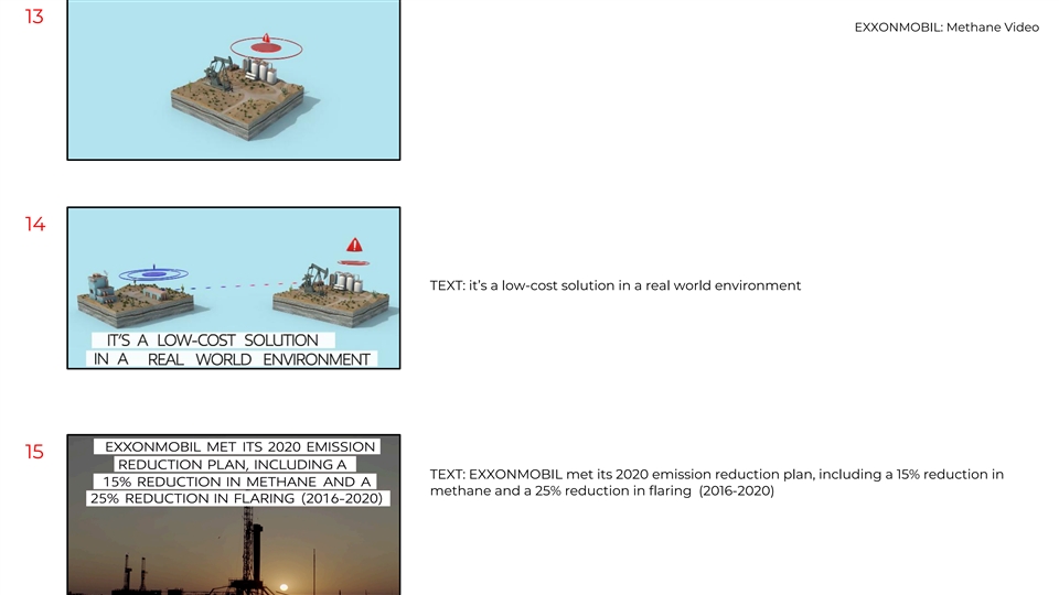 13 EXXONMOBIL: Methane Video 14 TEXT: it’s a low-cost solution in a real world environment 15 TEXT: EXXONMOBIL met its 2020 emission reduction plan, including a 15% reduction in methane and a 25% reduction in flaring (2016-2020)13 EXXONMOBIL: Methane Video 14 TEXT: it’s a low-cost solution in a real world environment 15 TEXT: EXXONMOBIL met its 2020 emission reduction plan, including a 15% reduction in methane and a 25% reduction in flaring (2016-2020)
