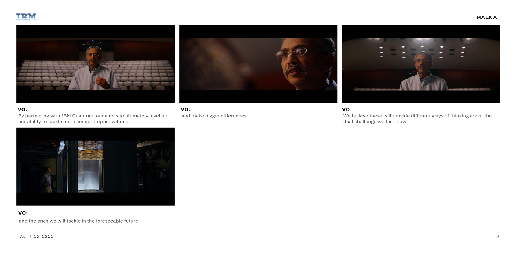 to innovate VO: VO: VO: By partnering with IBM Quantum, our aim is to ultimately level up and make bigger differences. We believe these will provide different ways of thinking about the our ability to tackle more complex optimizations dual challenge we face now VO: and the ones we will tackle in the foreseeable future. 9 April 13 2021to innovate VO: VO: VO: By partnering with IBM Quantum, our aim is to ultimately level up and make bigger differences. We believe these will provide different ways of thinking about the our ability to tackle more complex optimizations dual challenge we face now VO: and the ones we will tackle in the foreseeable future. 9 April 13 2021